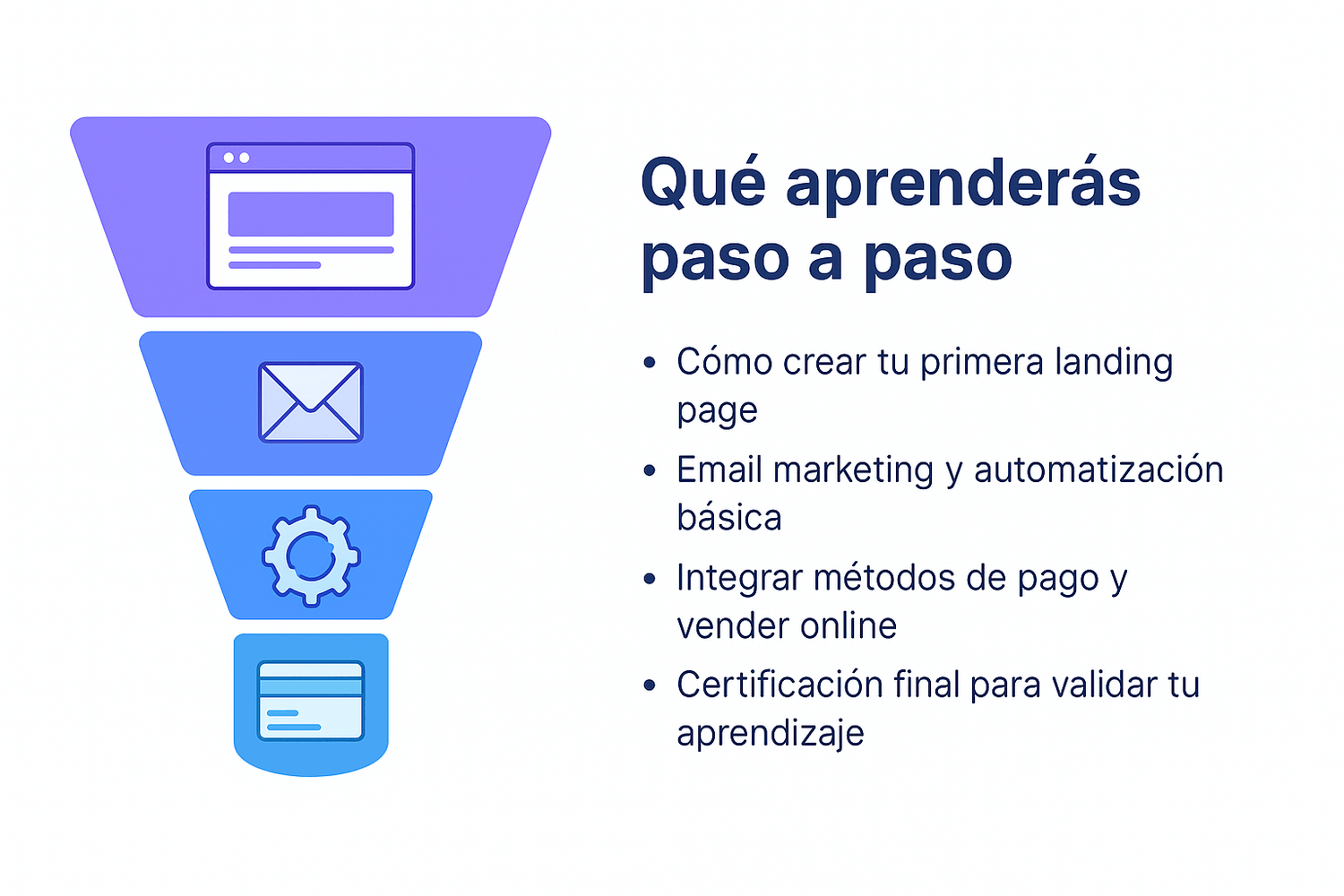 Aplicación inmediata: lo que aprendes se traduce en embudos reales para tu negocio.